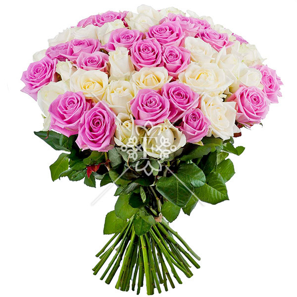 роза розовая и белая - 51 шт., упаковка, лента.